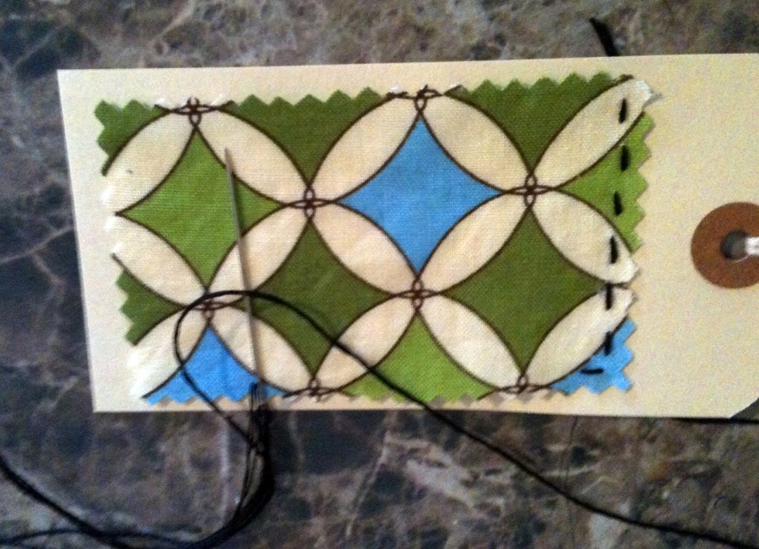 They are just plain manila tags from Office Depot, and I hand sewed fabric scraps to them with embroidery floss.